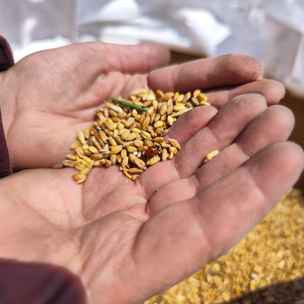La nostra è una filiera circolare: dalla semina alla raccolta, dalla macinazione a pietra, nel nostro mulino, fino alla realizzazione, con gli sfarinati integri ottenuti, di prodotti da forno e di pasta.
